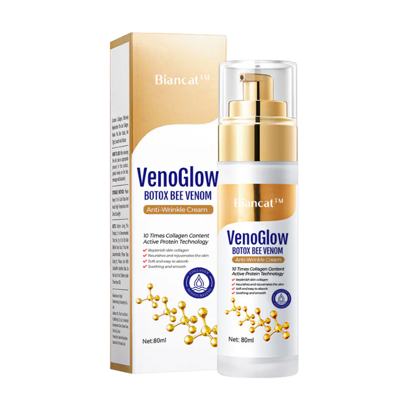 Biancat™ VenoGlow Botox Bee Venom Anti-Wrinkle Cream uses bee venom peptides to mimic Botox, gently relaxing facial muscles and minimizing expression lines. Combined with hyaluronic acid, it hydrates and plumps the skin, smoothing fine lines and deep wrinkles. Acetyl Hexapeptide-8 and botulinum toxin-like technology target forehead lines and crow’s feet, leaving your skin firmer and more youthful.